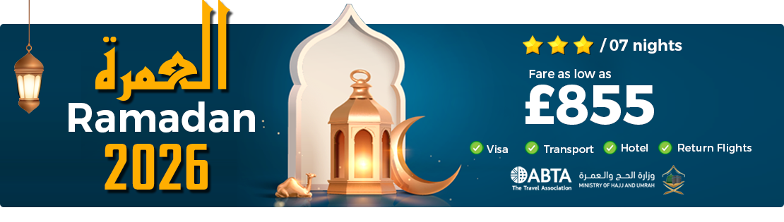 Our carefully designed Umrah deals include hotels and accommodation, transportation, direct as well as indirect return flight tickets along with after-sales guidance in any aspect that our clients may need help with. Thousands of UK citizens enjoy the relationship of trust and integrity and keep returning to us and referring more passengers to us for booking new Umrah packages throughout the year. We take into consideration every detailed aspect in a deal before we make the offer to our Umrah passengers in UK. Entrust us if you want your perfect itinerary to be planned and set your way on the best Umrah package for 2026.